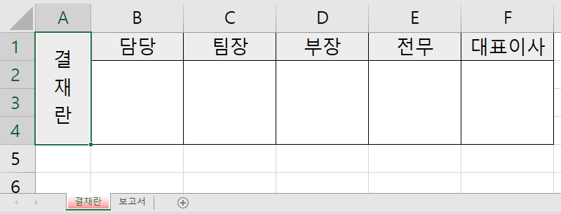 1. 먼저 새로운 시트에 결재란을 만들어 줍니다.