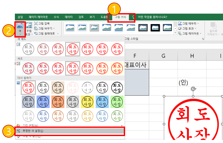 [엑셀] 결재란 넣기와 수정, 도장 투명하게,흰 배경 없애기