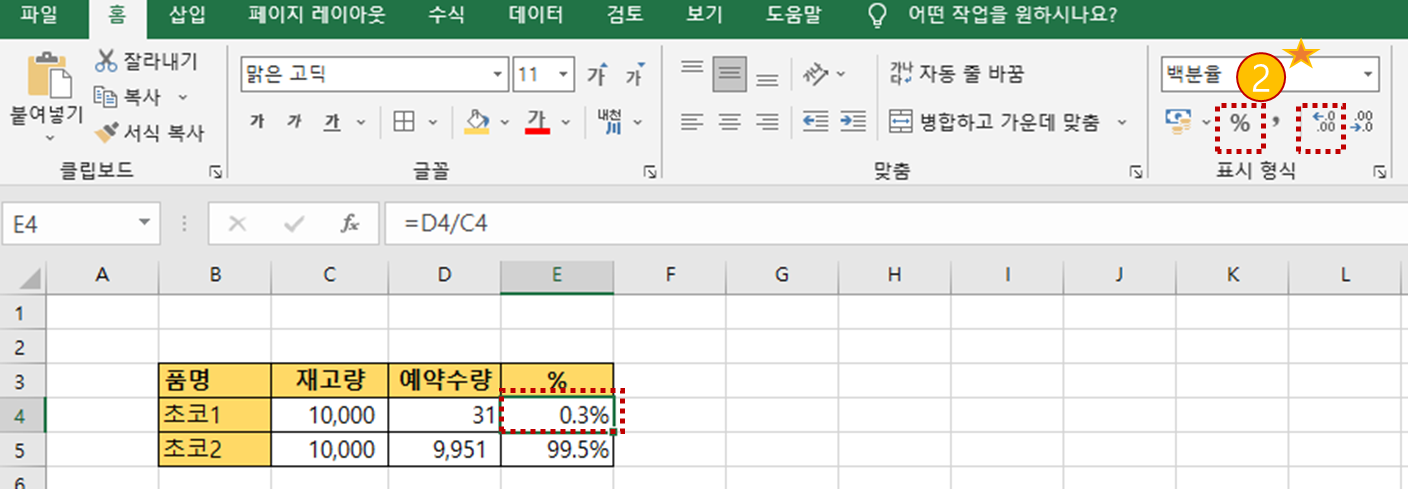 1% 미만일 때는 정수인 경우 0%로 표시되는데
