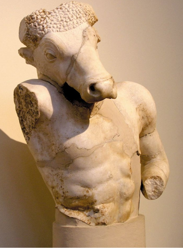 제우스의 아들 미노스는 바다의 신 포세이돈에게 크레타의 왕이 되게 해달라고 부탁했습니다. 그는 포세이돈에게 왕이 되기 위해 신들의 가호를 받고 있다는 증거를 사람들에 보여주기 위해 황소를 한 마리 보내달라고 기원하였습니다. 포세이돈은 네가 왕이 될 수 있도록 황금 황소 한 마리를 주겠다고 하며 다만, 왕이 되고 나서 황금 황소를 제물로 바칠 것을 요구했습니다. 포세이돈은 약속대로 황금 황소 한 마리를 보내 주었고 사람들은 황금 황소를 가진 미노스를 신이 보낸 사람이라고 생각하고 크레타의 왕으로 모셨습니다.