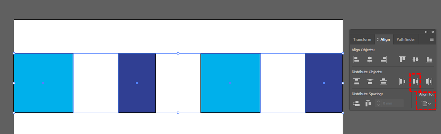 대지를 기준으로 개체들이 일정한 간격으로 정렬이 됩니다.