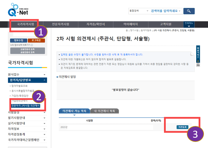 주관식, 서술형, 단답형 문제의 시험인 경우 의견을 2차 시험 의견 제시에서 의견제시를 할 수 있습니다.