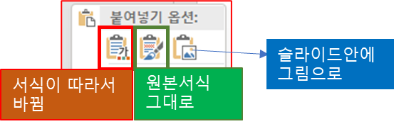 붙여 넣기 옵션이 나옵니다.